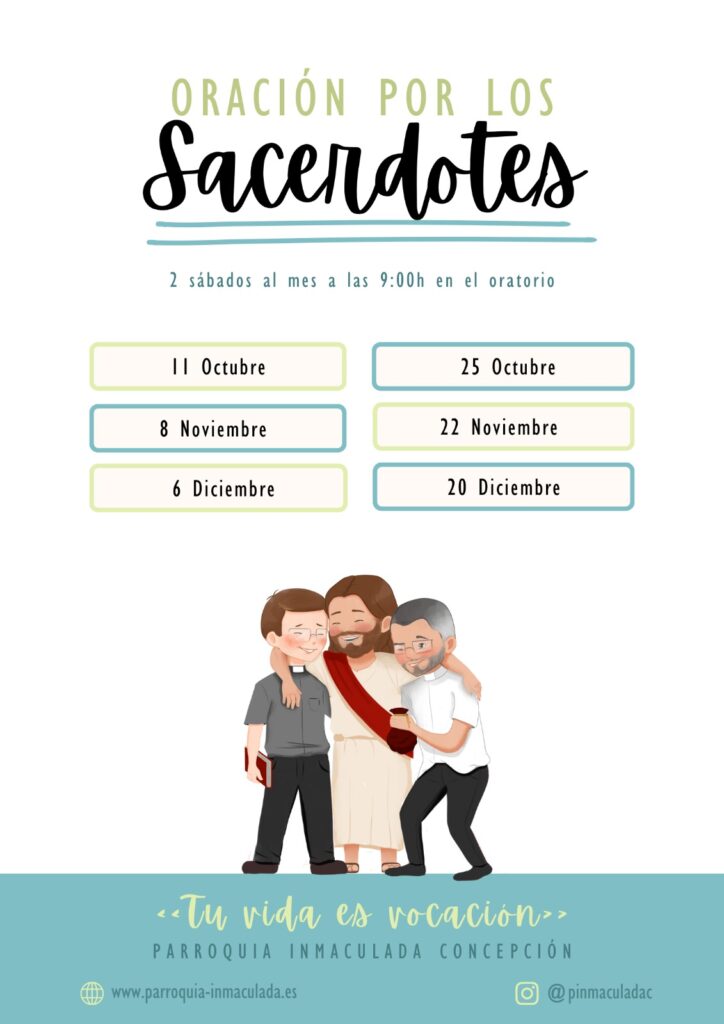 Dos veces al mes se organizan en el oratorio de la parroquia una oración por todos los sacerdotes, que tan necesarios son en nuestro mundo. Os invitamos a todos a uniros y dedicar este rato de oración por ellos.
