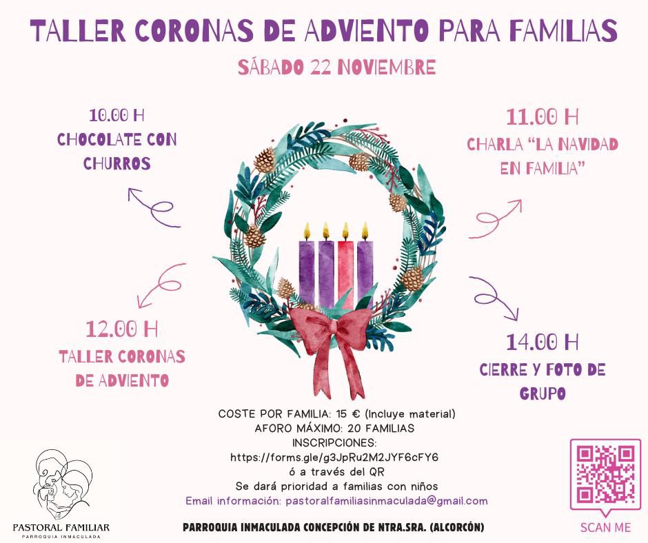 Este sábado 22 de Noviembre tendrá lugar en nuestra parroquia un taller para hacer tu propia corona de Adviento en familia, como preparación de la ya tan próxima Navidad.